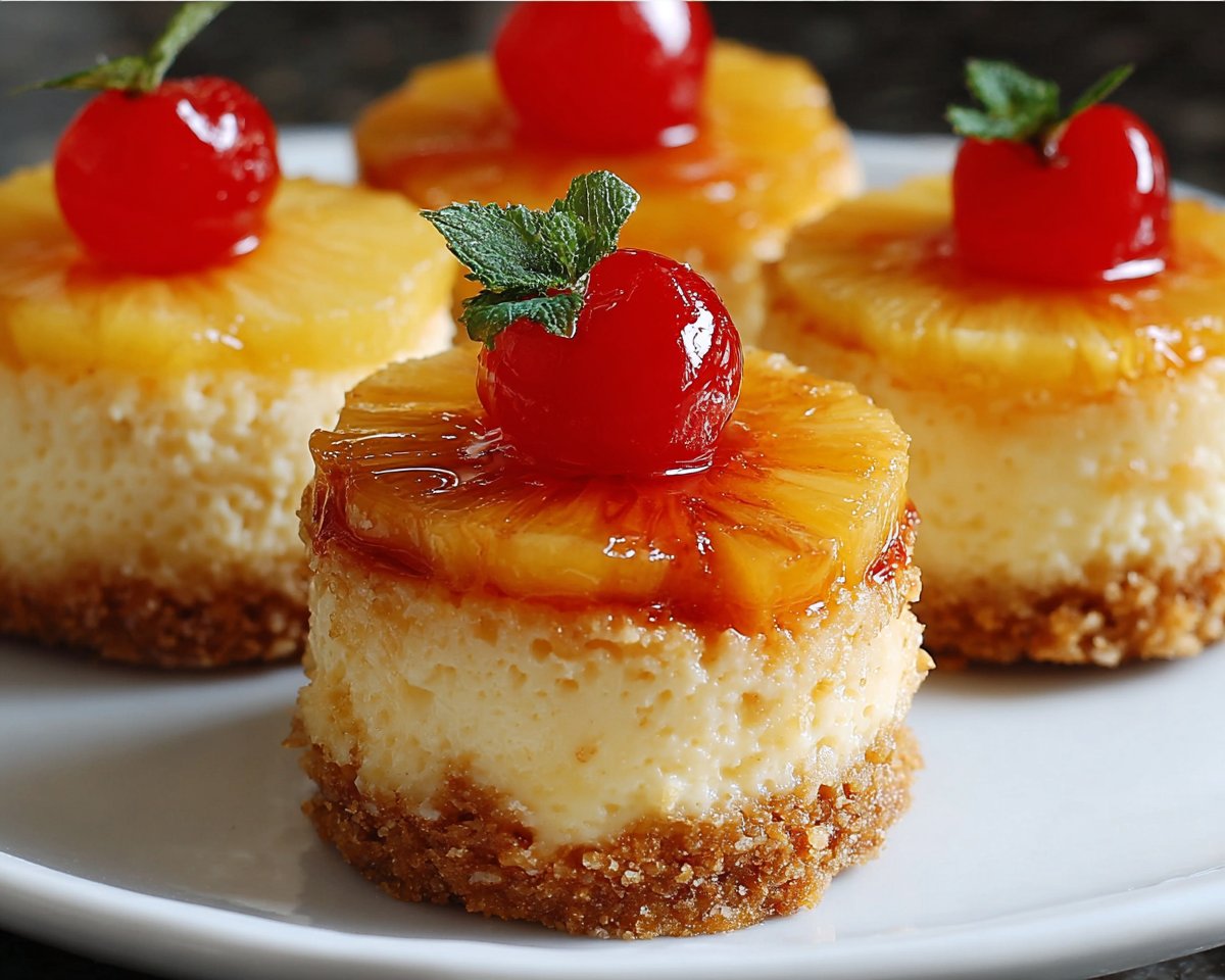 Mini Pineapple Upside-Down Cheesecakes make a small, bright dessert. They mix creamy cheesecake with sweet pineapple and a caramel touch. They bake fast in a muffin tin and please kids and adults. For a different pineapple dessert idea, try the Hawaiian carrot pineapple cake for another bright flavor.